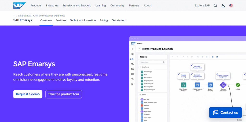 SAP Emarsys Customer Engagement is a powerful CRM focusing on enterprises and providing them with automation, analytics, and personalization for better performance. The platform is a good choice for organizations with vast customer bases and complex marketing needs. The service takes advantage of AI and predictive modeling to offer personalized experiences and ensure customer satisfaction.