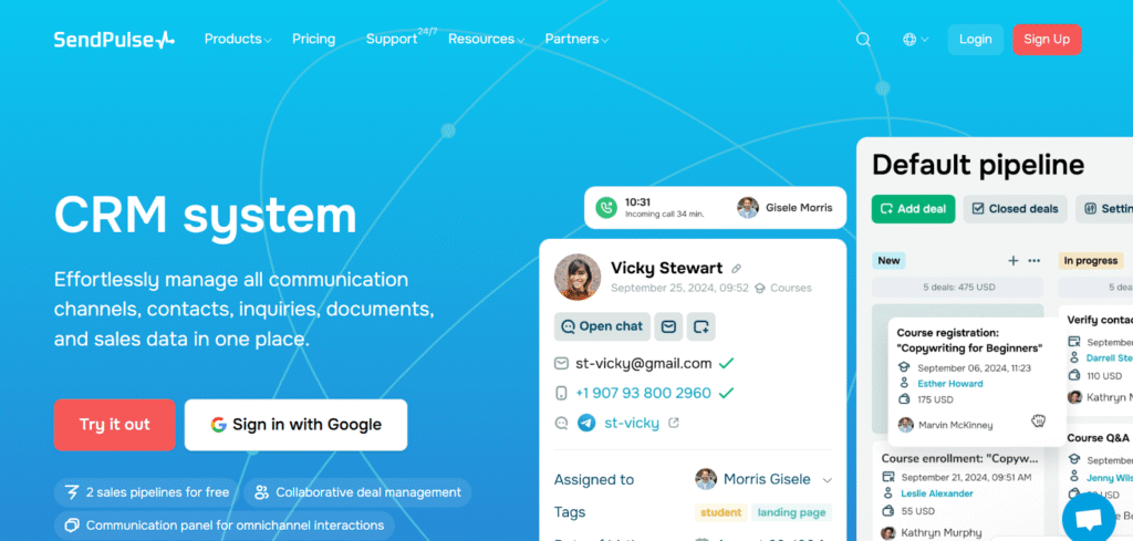 SendPulse is a multipurpose solution and CRM designed for accessibility, efficiency, and depth. Unlike complex platforms prioritizing large businesses, SendPulse allows you to kickstart communication with customers from day one even without any experience. The platform combines CRM functionality with email marketing, chatbots, web push notifications, and SMS, preventing you from switching several tools. The service is a great fit for small to medium-sized businesses seeking to consolidate marketing and sales operations into one ecosystem.