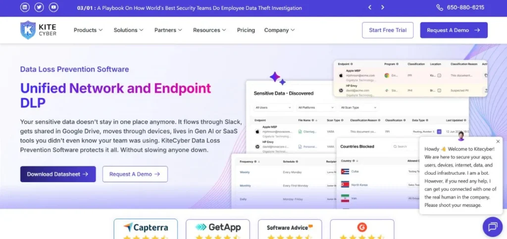 Kitecyber Data Shield4.7/580+ pre-configured compliance templates with data lineage tracking