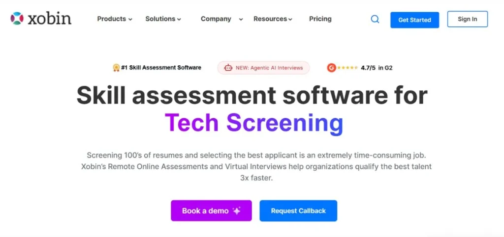 | Xobin | 4.7/5 | AI test builder generates assessments from job descriptions |