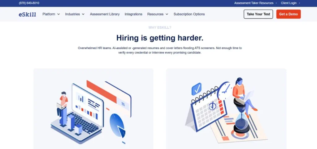 eSkill is the company that deals with pre-employment testing of skills, but instead, it focuses on industry-subjective testing in tens of industries. The adaptive testing technology of the platform will scale the difficulty of questions based on the answers given by the candidates in real-time to give better skill level tests. Questions that include simulation proposed real-life tasks and are tested in a controlled setting; they provide an insight into how candidates will perform on the job, as they would in specialised jobs.